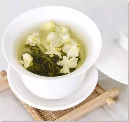 从色调上绿茶的翠绿与茉莉花的雪白均属冷色调,些许白色的茉莉花瓣散落在绿茶中,色泽绿中带白,柔和协调,如同漫天的白雪飘落在一望无际的森林里,让人赏心悦目。如果夏天饮上三两口茶汤,看到茶中茉莉花与绿茶的完美结合,会让你的内心充满一丝凉意,消解暑气,倘若在秋冬,遇到降温和雾霜,泡上一杯也甚是觉得温暖。