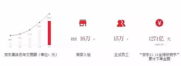 从数据来看,京东2012年交易额约为869亿元,2016年交易额约为9392亿元,比2015年增长3325亿元,五年间增长近11倍,可见电商平台发展之快,呈高速发展之态。2017“京东11.11全球好物节”下单金额1271亿(11月1日—11日),约占全年交易总额10%。