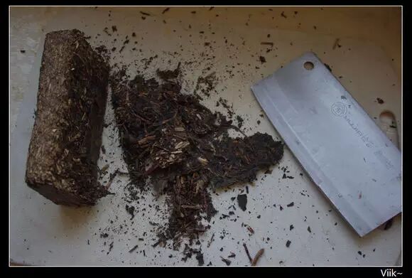 1、原料:砖茶,这个是制作蒙古奶茶必不可少的原料,