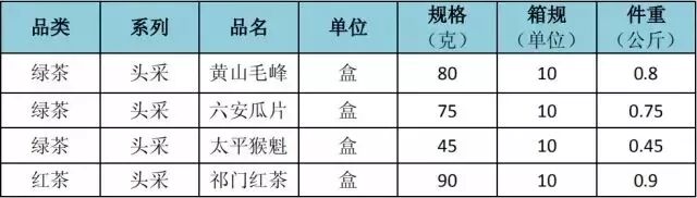 产品:祥源安徽名茶系列(含头采黄山毛峰、六安瓜片、太平猴魁、祁门红茶)
