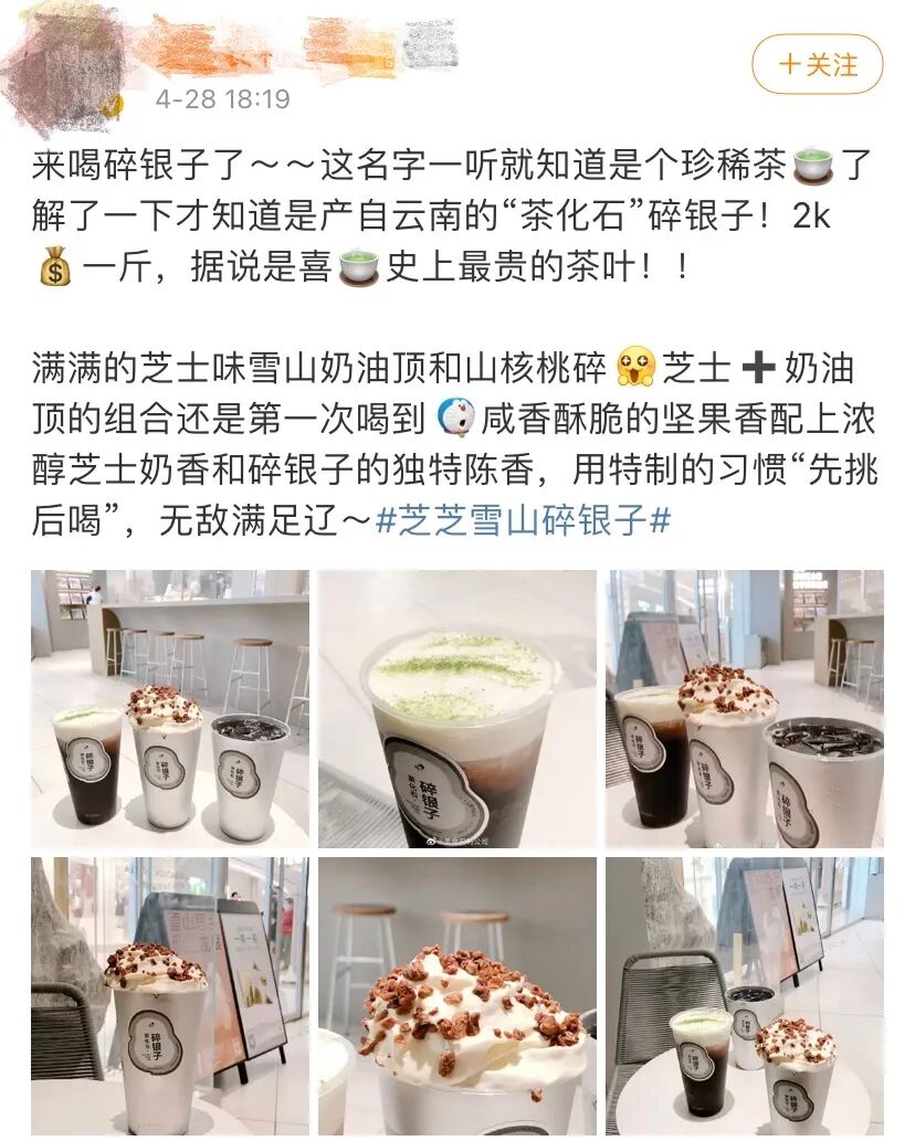 内容转载自Vista氢商业(ID:Qingshangye666),作者夏夏。五一假期,我投奔了一位堪称吃喝玩乐达人的姐妹,逛街拍照打卡网红餐厅一条龙安排得明明白白,让我感觉到了假装名媛的快乐。 什么吃的喝的她都不落下,还硬要拉我去尝尝喜茶最近上架的新品——以碎银子为茶底的芝芝雪山碎银子、芝芝碎银子和纯碎银子茶。