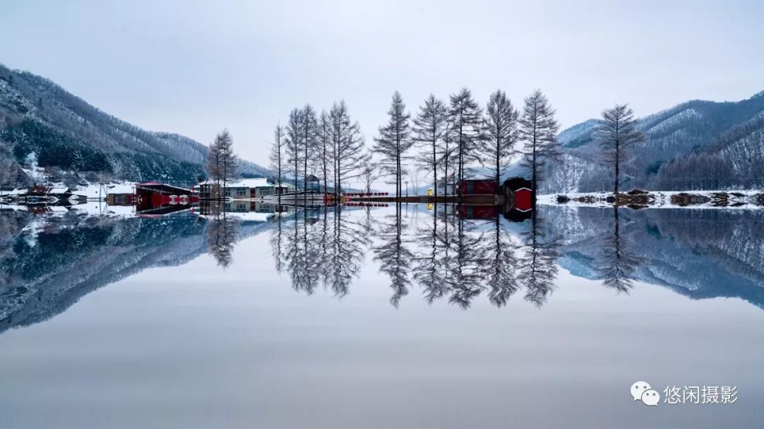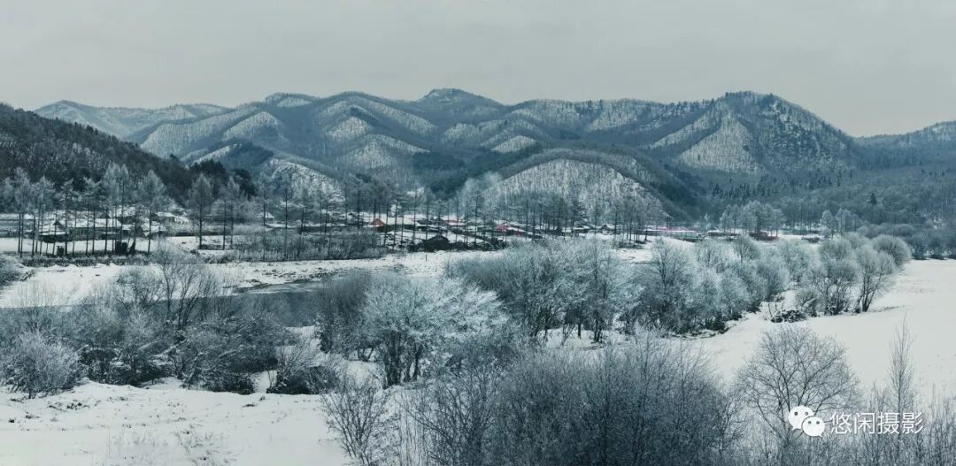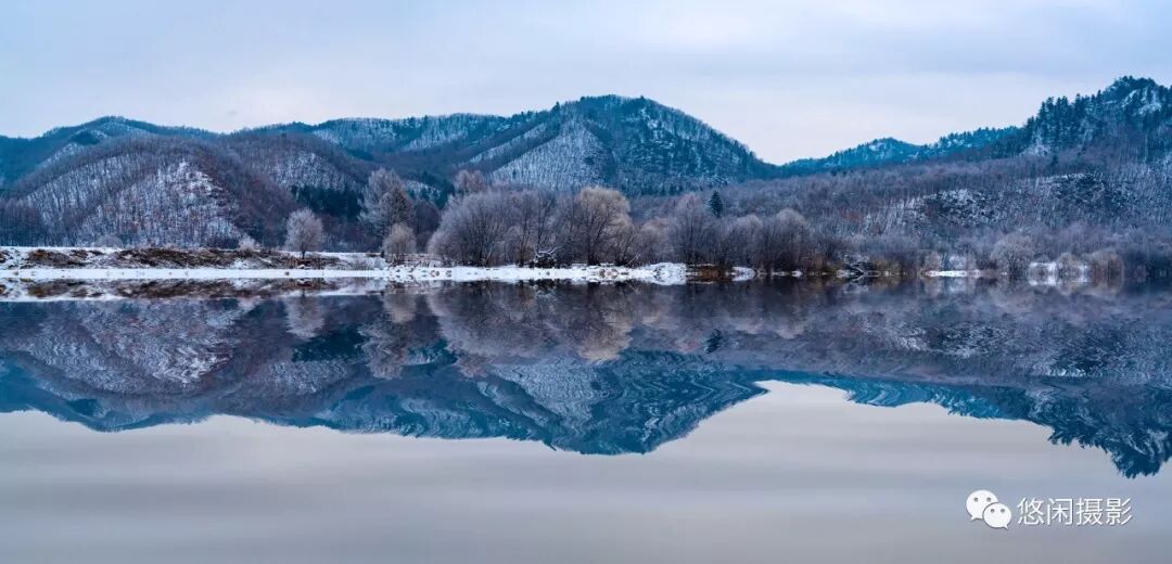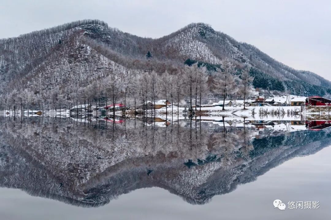 立冬,雪后的仙翁山,银装素裹,层次分明,与山脚下的黑桦、白杨树挂相映成趣,在永翠河中形成了难得一见的雾凇倒影