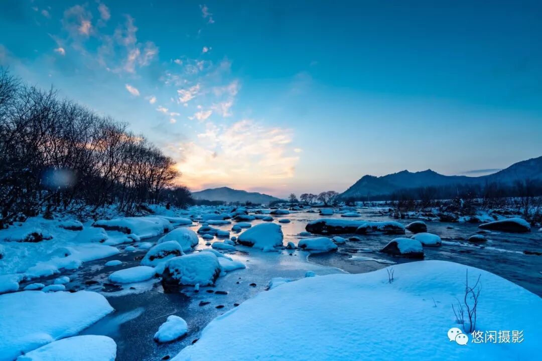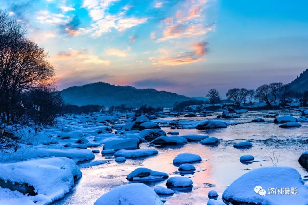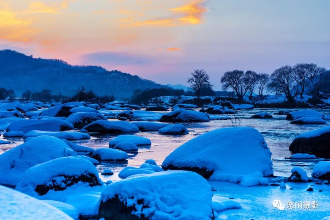 永翠河的石头,真的是一绝,当河水回落时,滚圆的石头裸露在缓缓流动的河面上,披着一层雪,景色格外迷人