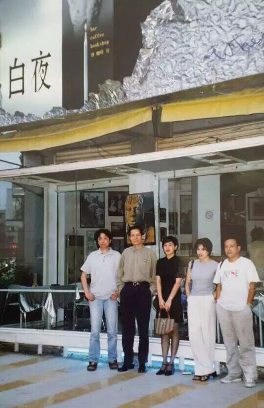 △|上世纪90年代末,成都白夜酒吧(老白夜)。左起:何多苓、王国伟、洁尘、翟永明、钟鸣