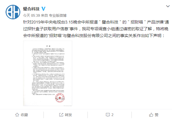 本文:璧合科技:公司与3.15晚会曝光的“招财喵”产品并无直接关系
