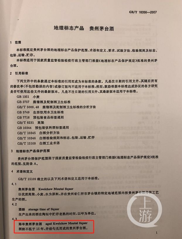 《地理标志产品贵州茅台酒》对陈年茅台酒的定义。