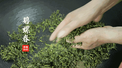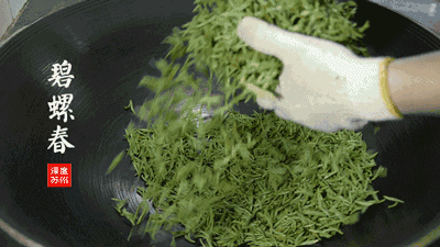 当茶叶干度达六、七成干,时间约10分钟左右,继续降低锅温转入搓团显毫过程。历时12~15分钟左右。4.搓团显毫是形成形状卷曲似螺、茸毫满披的关键过程。锅温50~60°C,边炒边用双手用力地将全部茶叶揉搓成数个小团,不时抖散,反复多次,搓至条形卷曲,茸毫显露,达八成干左右时,进入烘干过程。历时13~15分钟。