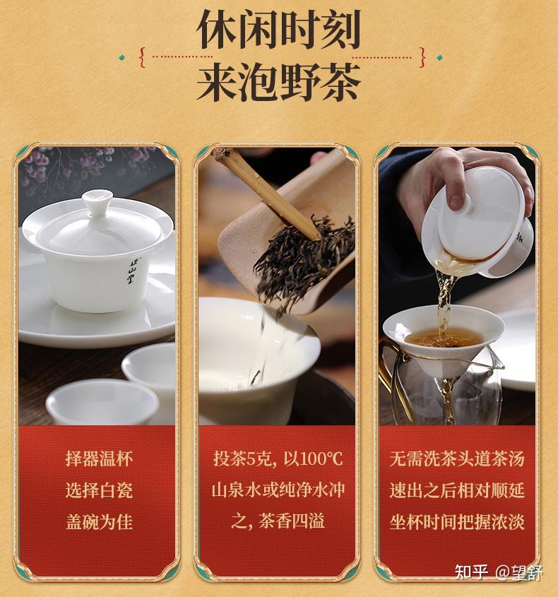正山堂正山小种野茶采用海拔1200-1500米高山野生无人区处手工采摘一芽三四叶,野韵十足,草木韵味清冽甘甜,干茶乌黑紧结,茶汤透亮,初显橙色,口感甘甜,具有回甘,在喉咙处都能感受到甜味,茶叶非常的耐泡,连泡10次都还有野韵
