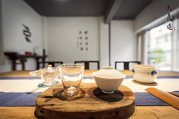 备好老茶盘和老茶碗,先欣赏干茶,闻干茶的香气。再用100度开水冲泡,快速注水,快速盖上盖碗。