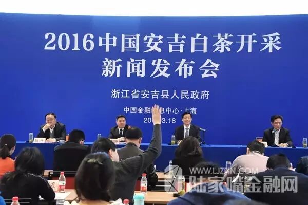 3月18日,2016年安吉白茶开采新闻发布会在中国金融信息中心举行。安吉县委副书记、县长沈铭权,安吉县委副书记陆为民,安吉县副县长任烽,安吉县农业局局长凌海明及安吉白茶重点企业代表出席新闻发布会。