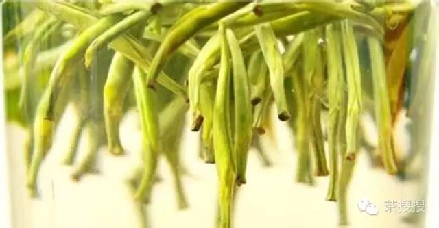 君山银针冲泡时,棵棵茶芽立悬于杯中,极为美观的。