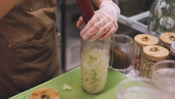 满茶制作手打柠檬绿茶,切羊肉片的手,打起柠檬来也力量十足,把柠檬皮的香气一棒槌打散到杯中,因为敲打过头,导致口感略微苦涩。
