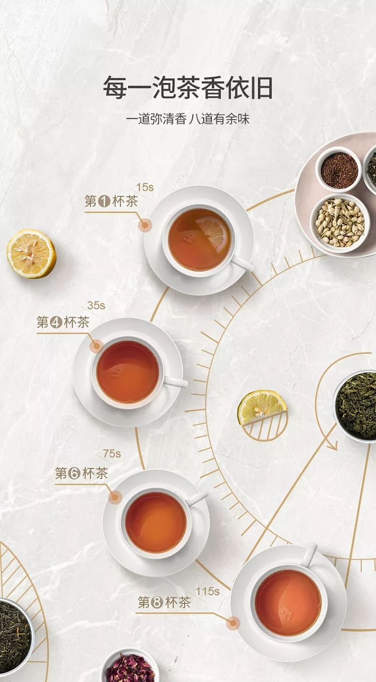 咱不管再怎么忙再怎么没时间,也能喝到一杯“功夫茶”了,啥都不用操心就能品到绿茶的鲜、红茶的爽、黄茶的甜、白茶的甘、黑茶的醇、乌龙的香~
