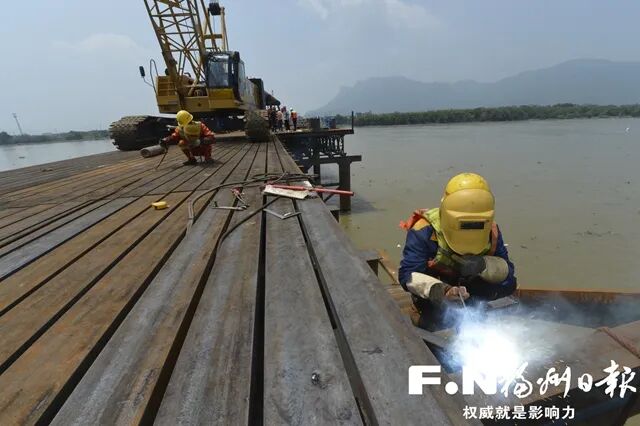 9日下午,在中铁大桥局福平铁路三标段一分部公路桥的施工现场,近千名施工人员正分布在大桥的各工区开展风屏障和公路桥伸缩缝施工。目前三标段公路桥沥青铺装已全部完成,标志着平潭海峡公铁两用大桥公路桥沥青铺装全线完成。