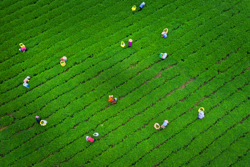 ▲“茶海”里忙碌的采茶工(张向阳 摄)