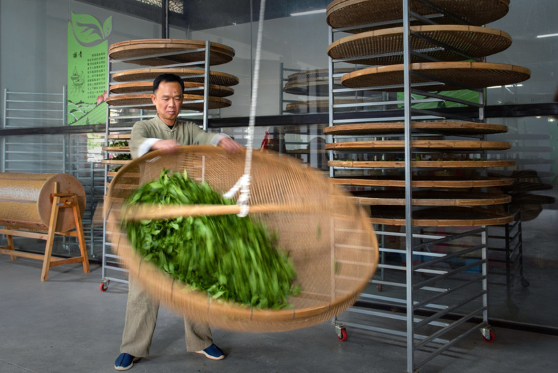 凉青、晒青:鲜叶采收送厂经过凉青后进行晒青。