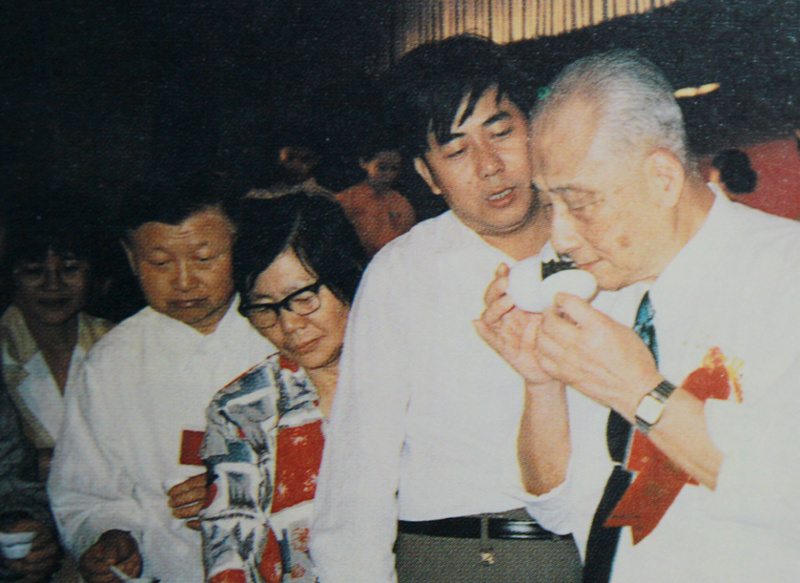 1996年11月,张天福在广州举行的安溪铁观音茶王赛上审评茶样