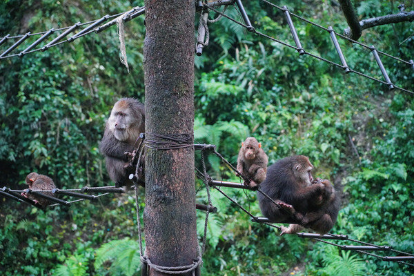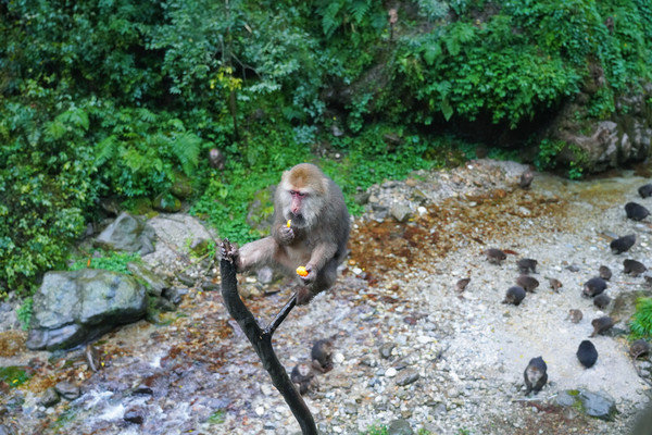 生态猴区游客们能看到的猴子们,大多都是“见过世面的”,每天见惯了来来往往的人们,它们也只是想讨一口食物而已。所以,人不犯我,我不犯人,表现出你的善意,它们也不会伤害你的。