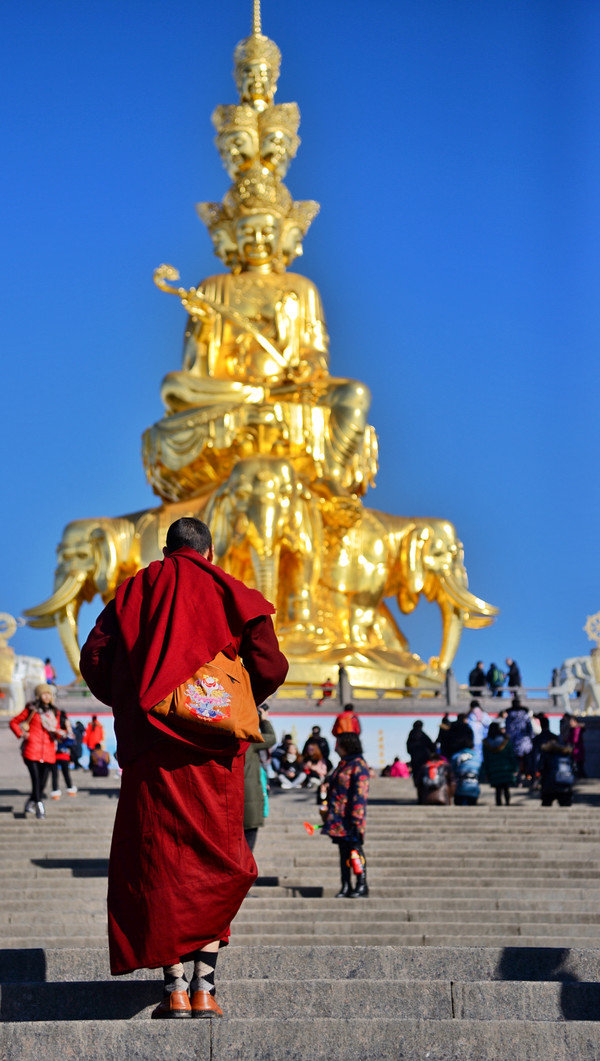 【峨眉印象】大多数人对峨眉山的印象都来自于武侠小说里的“峨眉派”,那真正的峨眉山呢?峨眉山,中国“四大佛教名山”之一,普贤菩萨的道场,普贤菩萨形像总是身骑六牙白象,作为愿行广大、功德圆满的象征,位于峨眉山万年寺的宋代普贤骑象铜像,中国现存最大的古代铜佛像!金顶高48米的十方普贤金像,为目前目前世界上最大、最高的十方普贤像,也成为了无数僧人和信徒不远万里也要来朝拜的圣地。