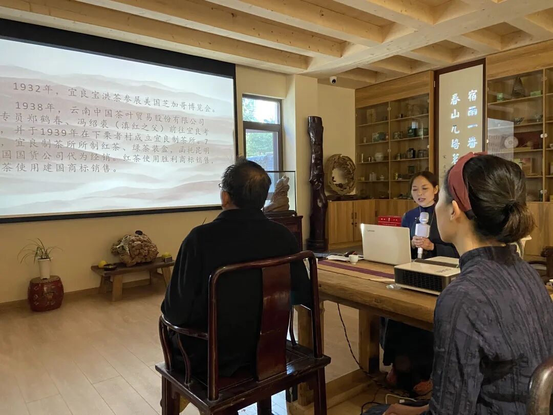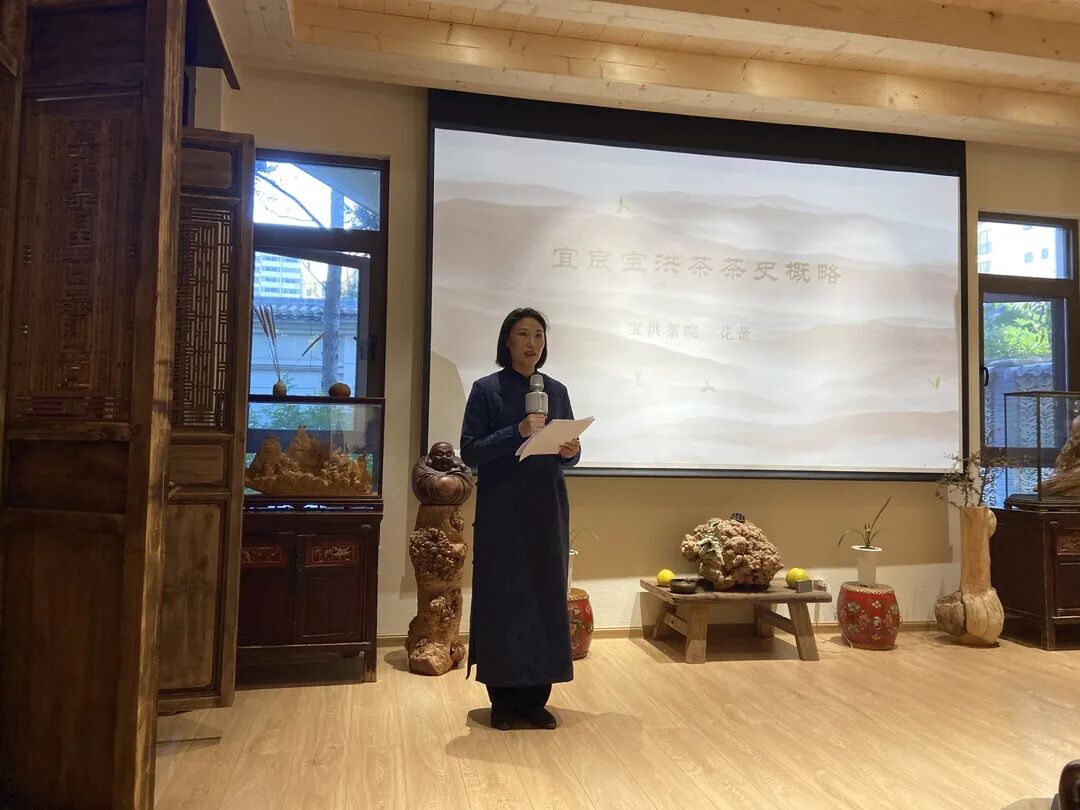 花蕾老师通过:1、诗意中的宝洪茶;2、历史文脉中的宝洪茶;3、宝洪茶的制作工艺;4、宝洪茶的冲泡与品饮四个方面,为在座的嘉宾诠释了宜良宝洪茶发展的简要历史概况。让很多嘉宾了解到宝洪茶除了我们平时经常喝到的炒青工艺的绿茶,还有烘青、晒青技艺以及宝洪茶红茶的制作方法。