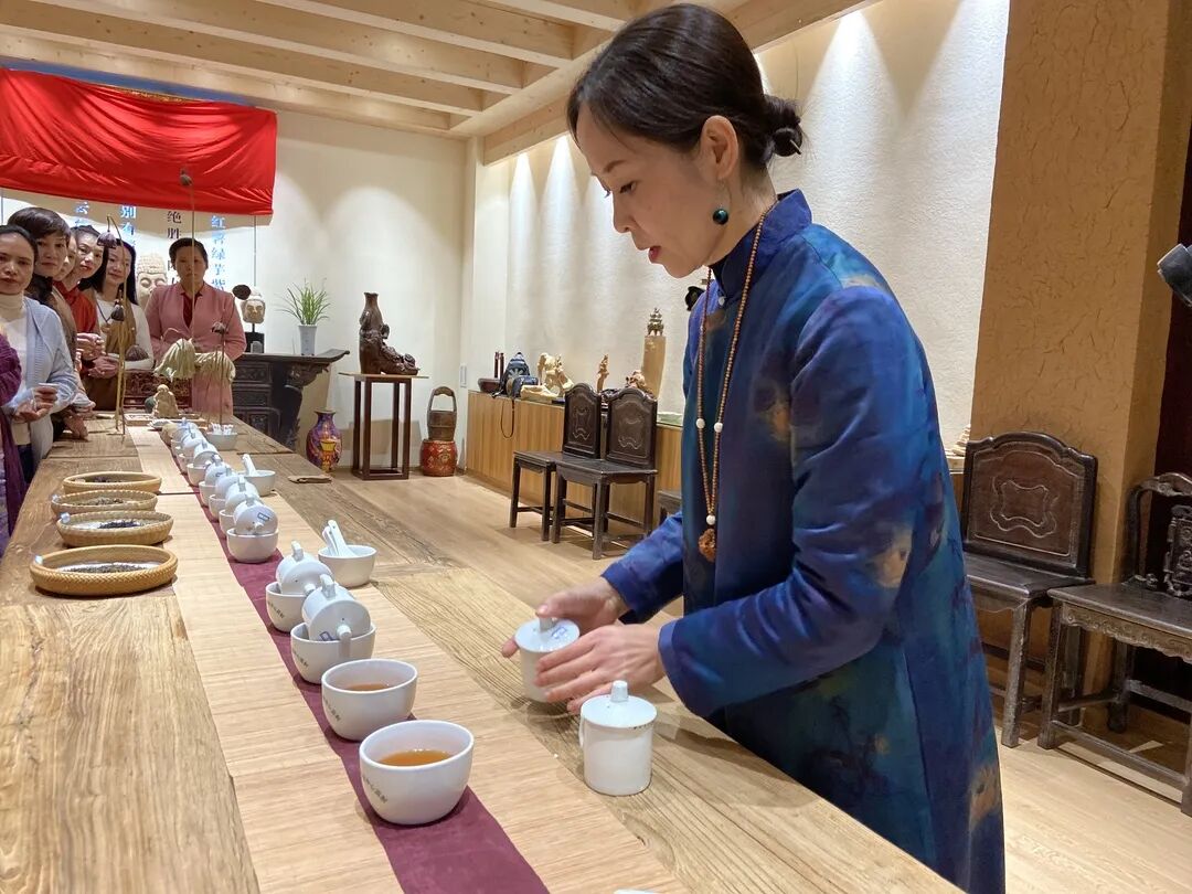 嘉宾们进行茶艺交流,互相分享一同品宝洪茶所带来的无穷魅力。作为与中国传统文化息息相关的非遗话题,茶会当天的嘉宾也感受到了宝洪茶文化的悠久历史。