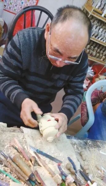 古时,木偶戏又被叫作傀儡戏,是百戏之首,也是闽南地区民俗中不可或缺的重要部分,在闽南艺术中独树一帜。从观赏的角度来说,木偶的脸是最吸引人的,因而木偶头的雕刻在木偶的制作过程中显得尤为重要。木偶头雕刻仅指头部造型,为了让木偶表演更为精彩,木偶头往往要装上好几种部位的机关,而这样的机关现在已经没有多少人懂了。在康美,就有一位远近闻名的制作木偶头大师——傅明筑。