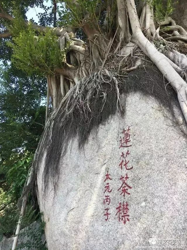 有所欠缺的是,“莲花荼襟”题刻年代虽然有了,但何人留笔依旧茫然。有人说,这是当时一般茶农的作品。权当如斯,那茶农应为乡村一位有文化有历史观的人士。我以为,这也符合当时的社会状况,晋代因避“永嘉之乱”,出现“衣冠南渡”实情。有的家族择居晋安郡(南安古称)丰州城一带,并在重建家园时上山开垦种茶,其中定然不乏识字士子。