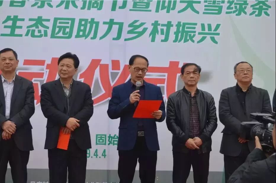 徐括新说,在这春意盎然、茶香四溢的美好时节,我们隆重举行2019固始电商春茶采摘节暨仰天雪绿助力乡村振兴启动仪式。在这里,我谨代表县委县政府对本次活动的顺利举办表示最诚挚和最热烈的祝贺!