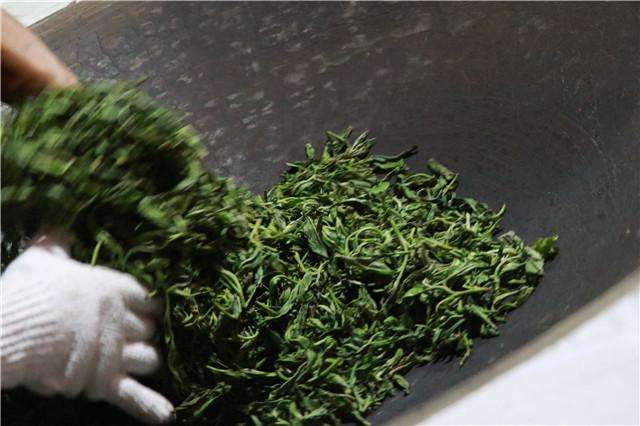 揉捻后的茶叶,含水量仍很高,若直接炒干就会在炒干机内容易结成团块,茶汁会粘结锅壁。