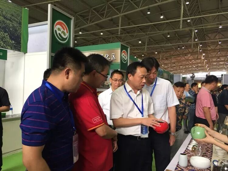 国家农业农村部主办的2018年贫困地区产品产销对接会上,来自453个贫困县的1800多名供货商和1370多名采购商参会,“恩施玉露”作为恩施硒茶的杰出品牌参加对接会。图为恩施州委副书记、州长刘芳震,副州长夏锡璠一行在展会现场指导工作。