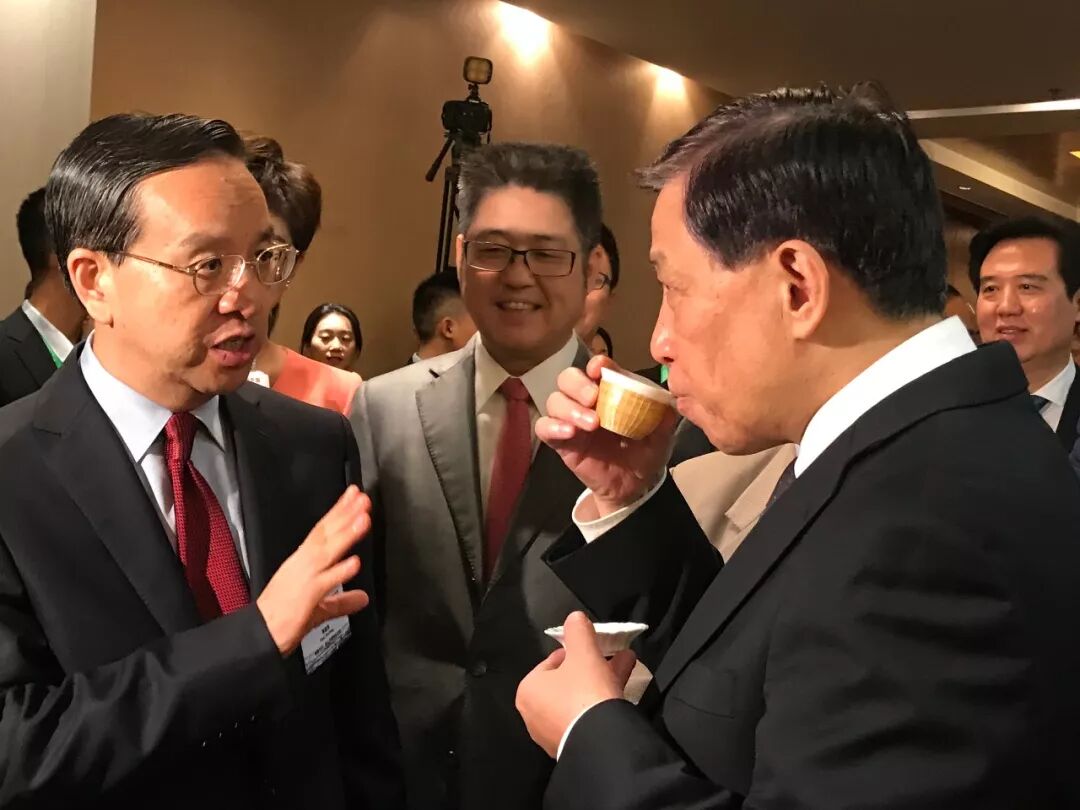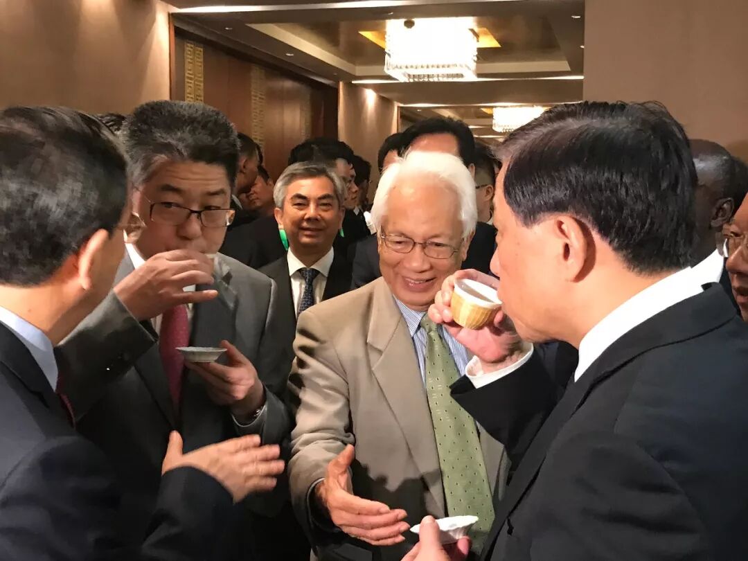 姚军女士将 恩施玉露1299分享给美国创新工程公司总裁唐金山先生、美国天天投资公司董事兼美国广西社团总会会长廖莹女士。