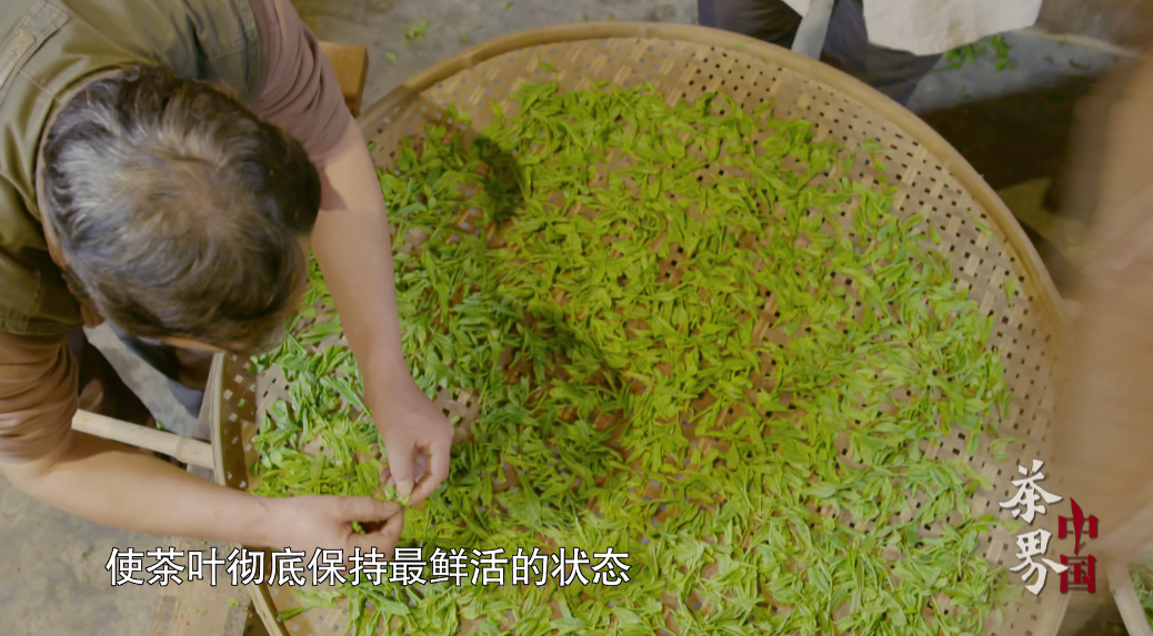 在焙火的时候,还要在竹篾上铺一层当地树皮纸,让它起到隔绝烟味的作用。在无焰暗火的慢慢烘烤之下,茶叶被逐渐焙干,香气也逐渐弥漫开来,经过这一系列工序,上好的恩施玉露就这样呈现出来了。