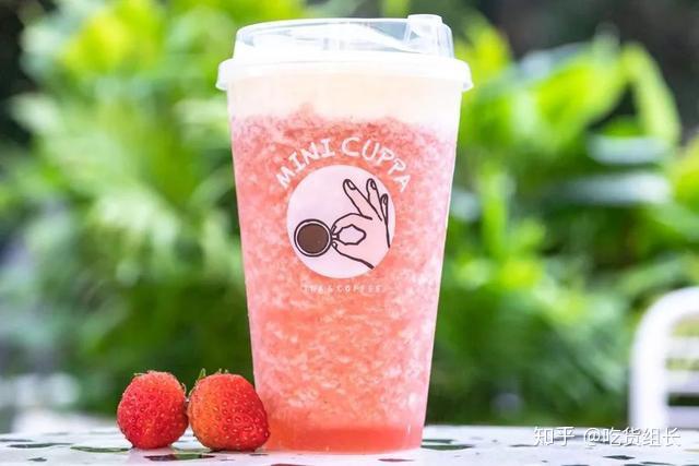 红颜芝芝草莓颜值爆表,上层是雪白如云的芝士奶盖,中间的草莓冰沙与果肉混合为漂亮的大理石纹,底层露出水红茶底,活像一位娇羞的少女。值得一提的是这杯奶茶中的草莓,是Mini Cuppa从特定渠道订购到香甜的奶油草莓,比市场上要提早2月上市,可能这将是你2019年秋天能喝到的质量最好的草莓茶饮了。