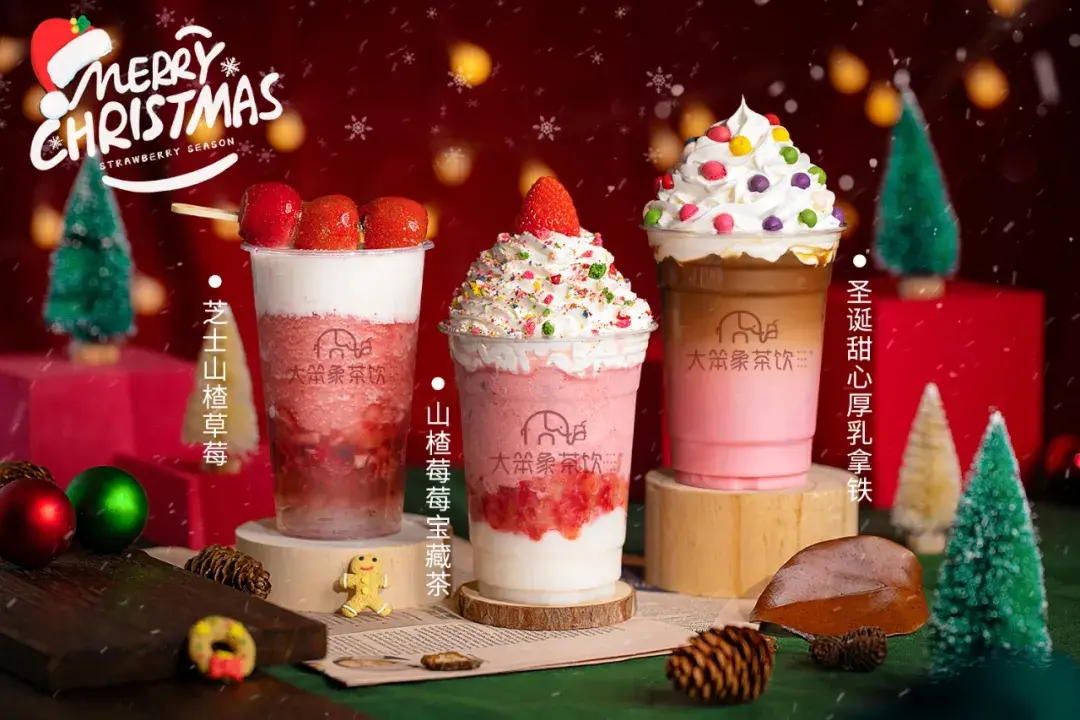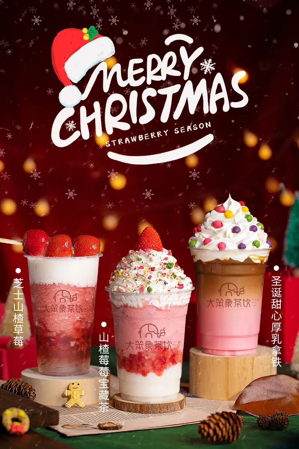 大笨象团队精心研发,多款圣诞饮品配方华丽登场,配以精美专属海报。大笨象茶饮助你打造不一样的个性圣诞系列饮品!