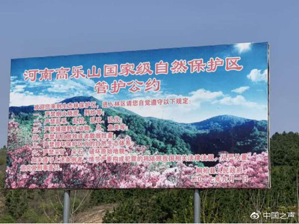 相关文件显示,确山县西部山区属于桐柏山大别山生态功能区。驻马店市确山县石磙河镇与南阳市桐柏县回龙乡毗邻,2016年国务院批复的高乐山国家自然保护区就在回龙乡境内。这片区域生态功能重要,为禁止开采区。