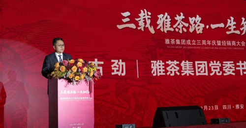 会上,雅安市人民政府、中国茶叶流通协会相关领导及专家先后致辞,高度肯定雅茶集团三年来在市场开拓、品牌建设、带动茶农增收及推动茶产业现代化升级等方面的突出贡献,并为品牌未来在产品创新、渠道建设、文化赋能等领域的发展指明方向。雅茶集团党委书记、董事长古劲回顾了品牌三年来从蓝图到基业的奋斗历程,向所有支持雅茶发展的合作伙伴致以诚挚谢意。