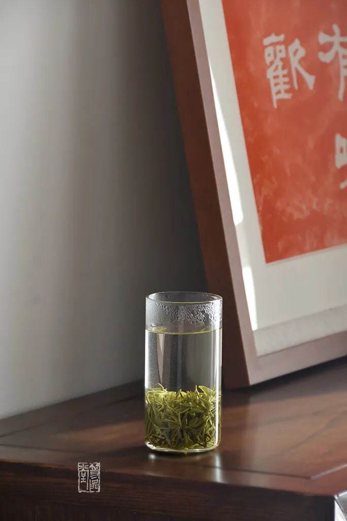 绿黄色的茶芽叶片悬聚在下,小而娇,嫩而润,仿佛盛满了姑苏江南里无边的春意,一不小心就要溢出来。