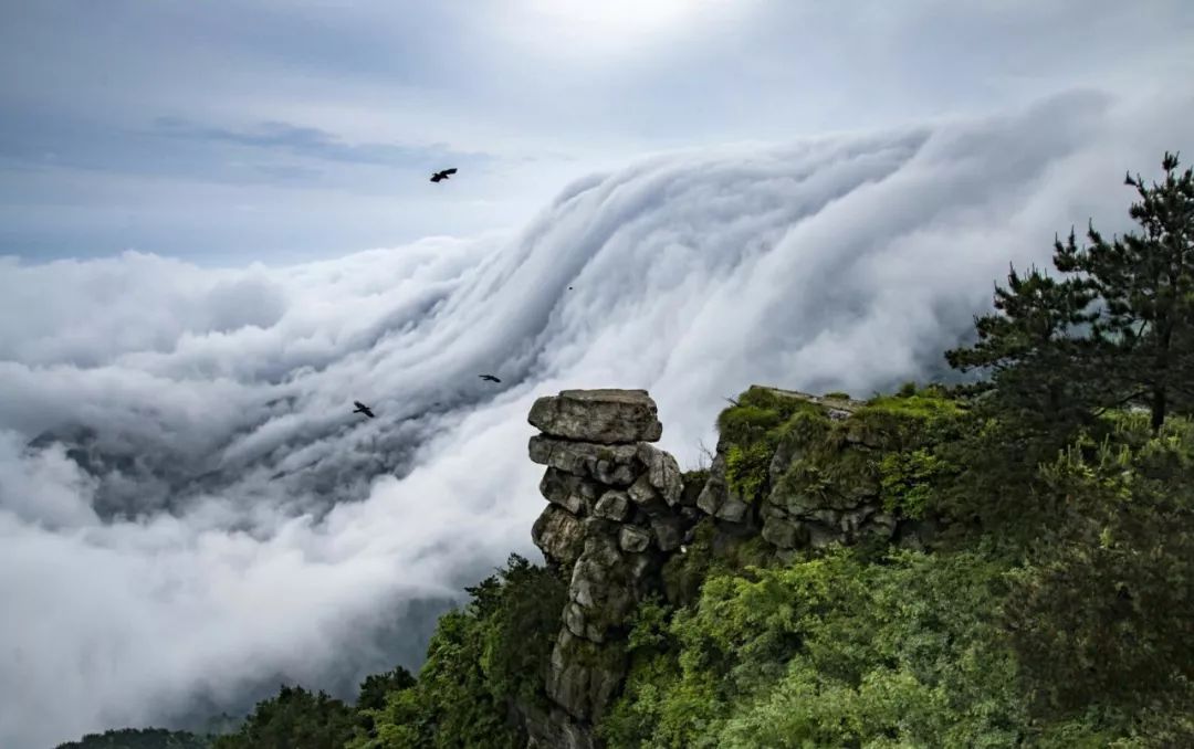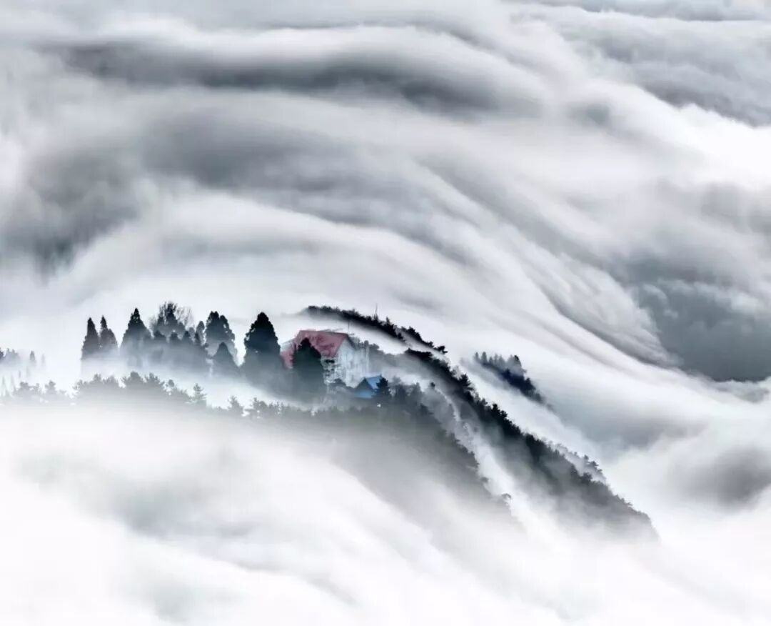 据统计,庐山全年雾日可达192天。每逢雾日,人们可以欣赏到“太虚幻境”般的奇景,可以领略庐山犹如沧海银波的千里阵云,亦或是云雾虚实相济的山韵。它时而轻柔如绢,袅袅婷婷;时而雪浪排空,澎湃汹涌。天地空灵,烟云供养,如梦如幻间,禅意十足。