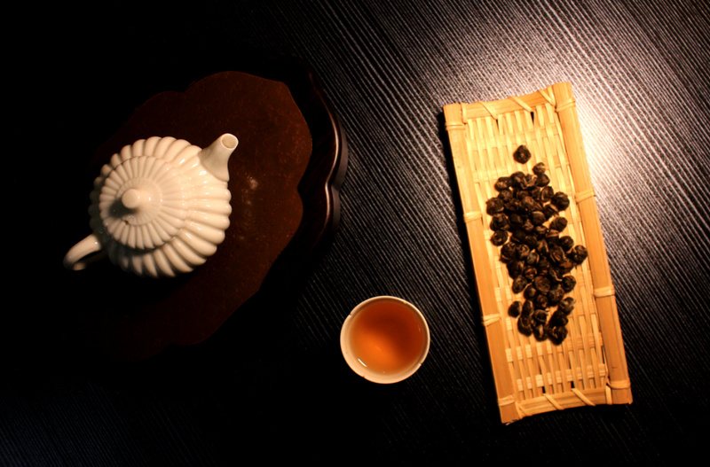 6.龙团珠茉莉花茶,亦称“茉莉龙团",系三窨的茉莉花茶。外形紧结呈圆珠形,又称“龙团珠"。内质香浓味厚,特别耐泡,为茉莉花茶中档产品。