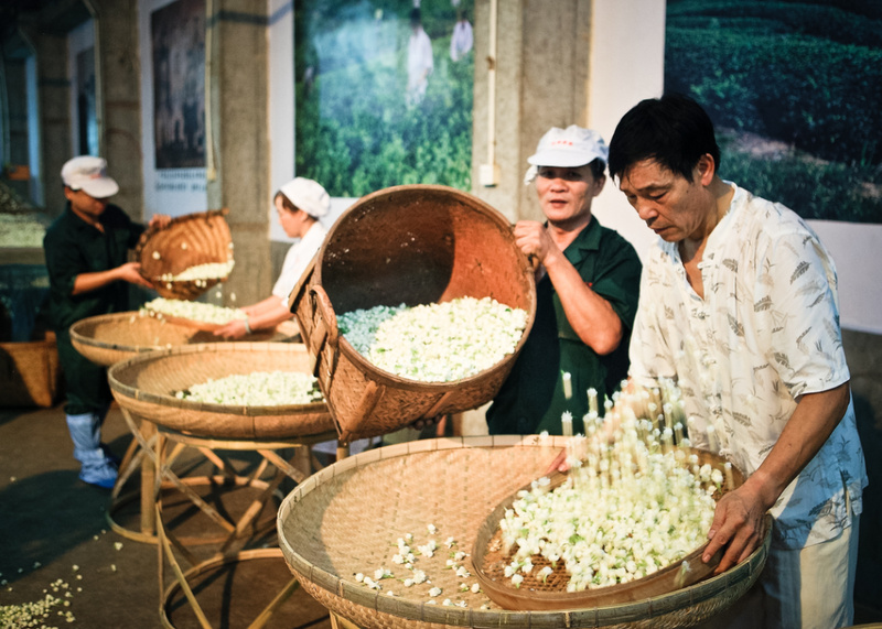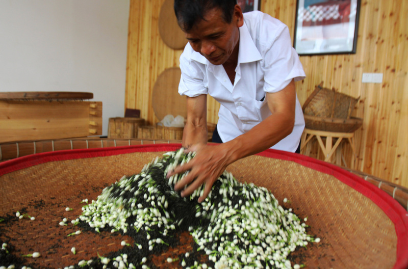 窨花是制作福州茉莉花茶的最关键工艺,它是茶与茉莉的完美交融