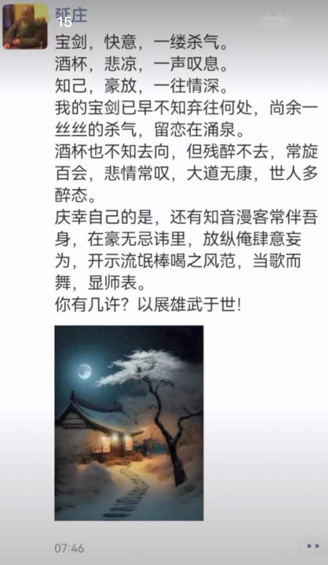 释延庄圆寂之后,诸多网友纷纷留言表示哀悼,亦曾想起他说过的那段经典语句:宝剑、快意,一缕杀气。酒杯,悲凉,一声叹息。知己,豪放,一往情深。我的宝剑已早已不知弃往何处,尚余一丝丝的杀气,留恋在涌泉,酒杯也不知去向,但残醉不去……