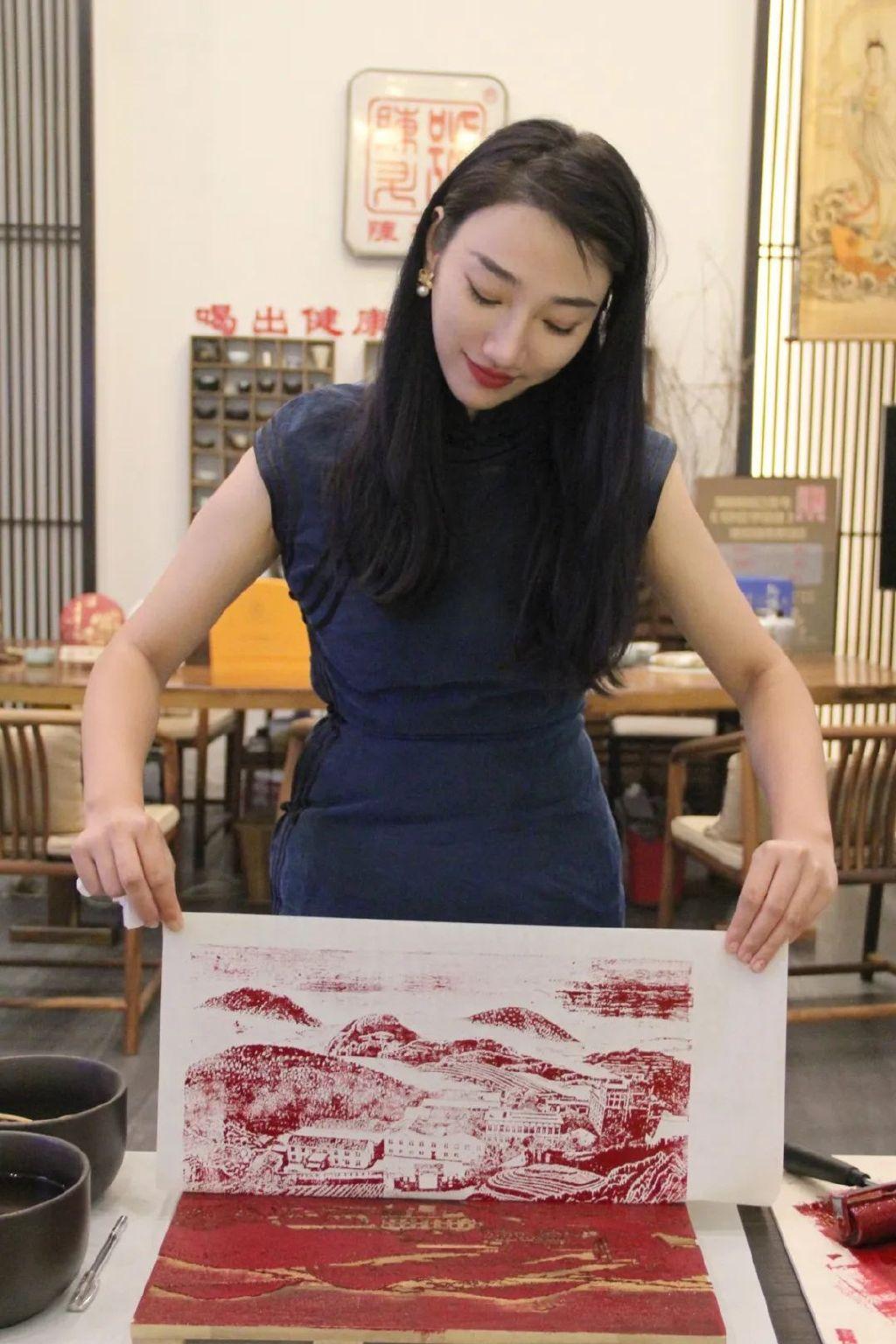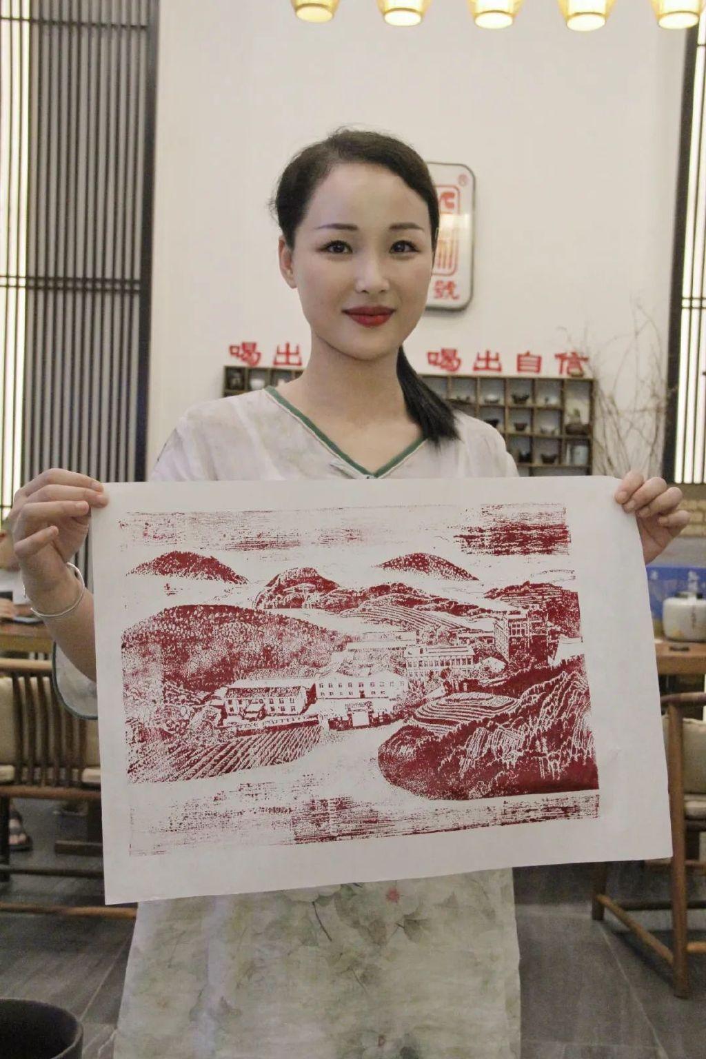 广福心道总经理林丽丽与嘉宾展示国营茶厂拓印版画