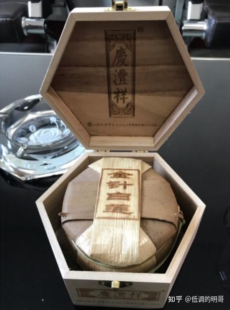 高端口粮茶&礼品茶:七彩云南茶叶(庆沣祥) 金针白莲茶普洱熟茶实木礼盒装