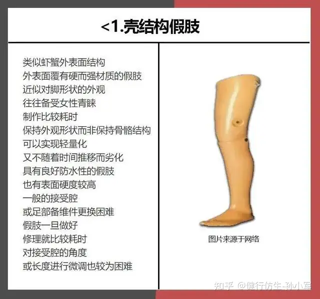 ·骨骼结构假肢与壳结构假肢相比,外观形状制作困难