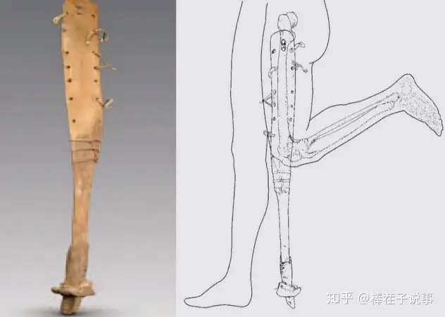 发现的这个骨关节的主人曾经用过拐杖。专家推测,假肢是木钉脚,底部用铁带加固。腿骨上的污渍表明皮革被用来固定假体。