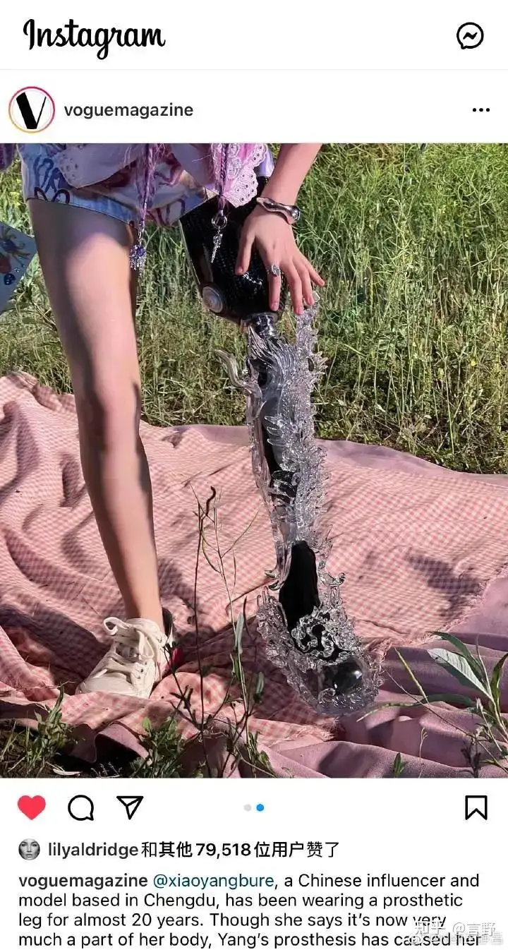 最近被美版VOGUE报道的成都女孩小杨,绝对是义肢时尚的引领者。