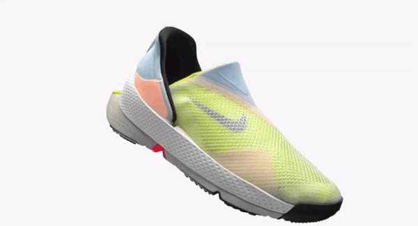 Nike发布的GO FlyEase运动鞋,可以让人轻松把脚滑进鞋子,脚顺势往下踩,缠绕在鞋子顶部的绑带会自动固定到位: