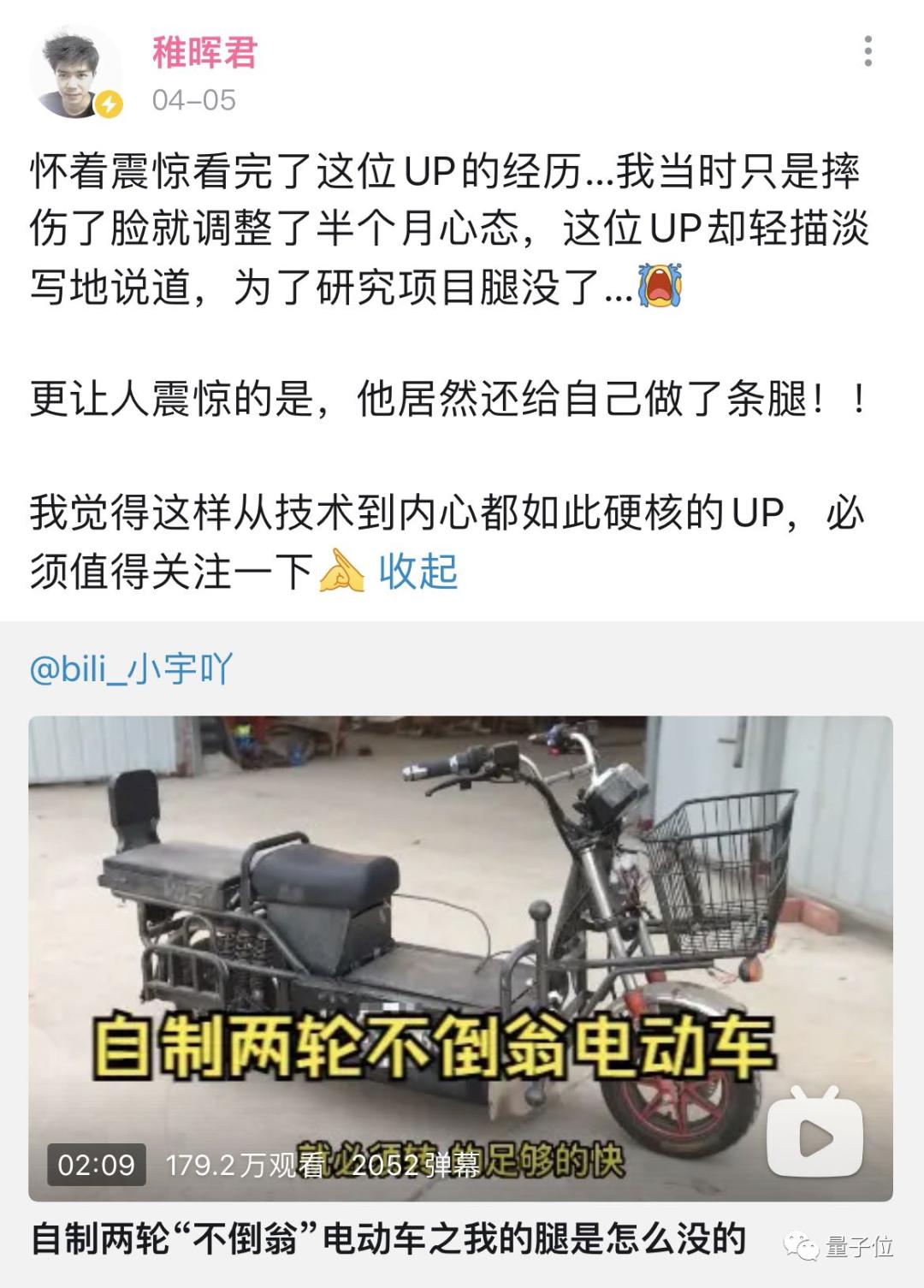 原标题:《DIY自平衡车意外失去左腿后,小哥爆改假肢玩出了花,稚晖君:技术到内心都硬核》