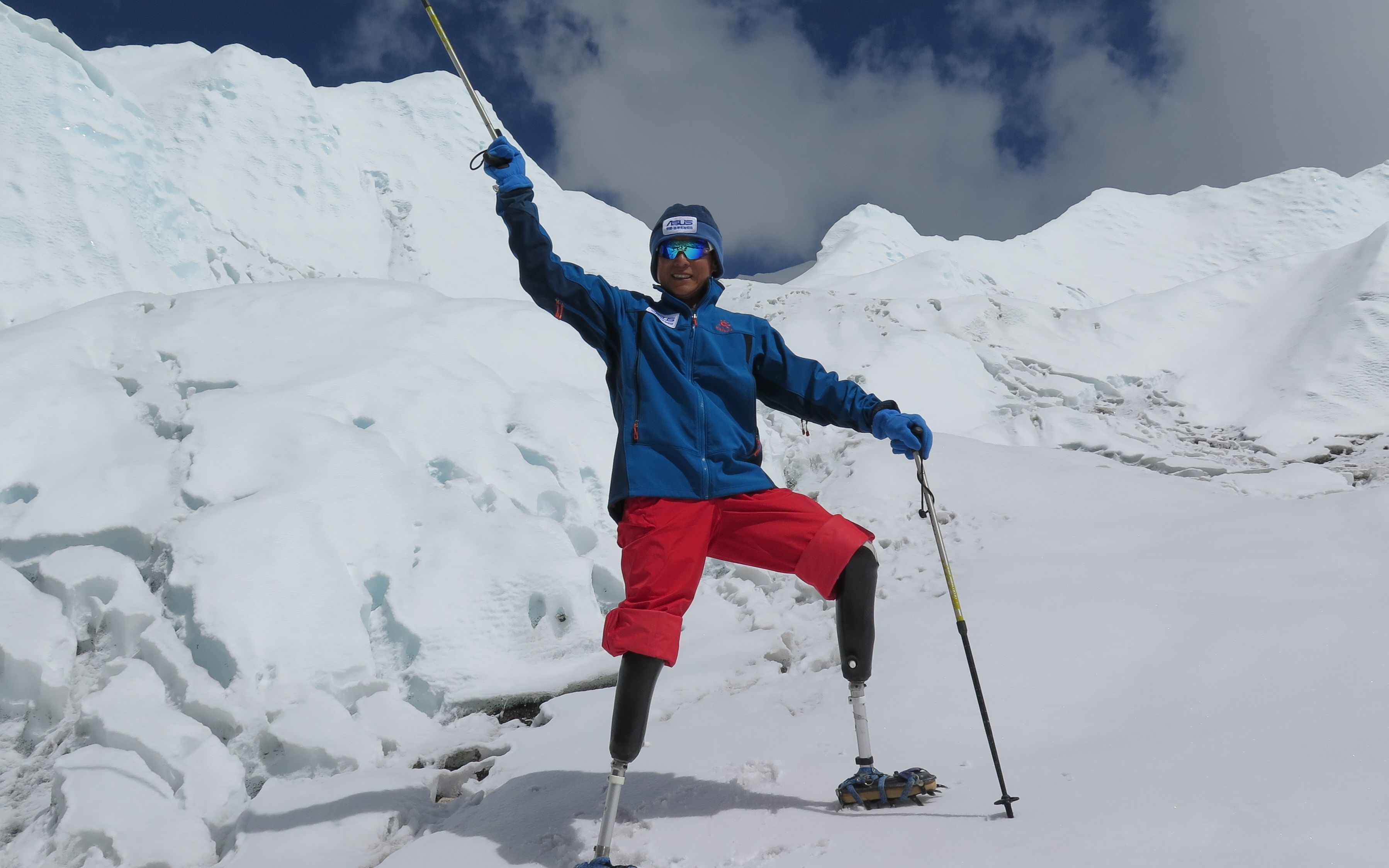 夏伯渝佩戴假肢攀登雪山。受访者供图
