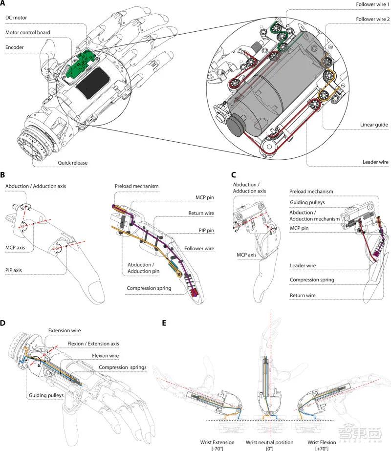 Hannes最大的亮点在于机械设计,它的手掌中容纳了电动执行器、控制板、传感器和传动机构等组件。其动力总成系统由一个紧凑的、高功率密度的直流电动机以及一个定制的摆线齿轮箱组成。